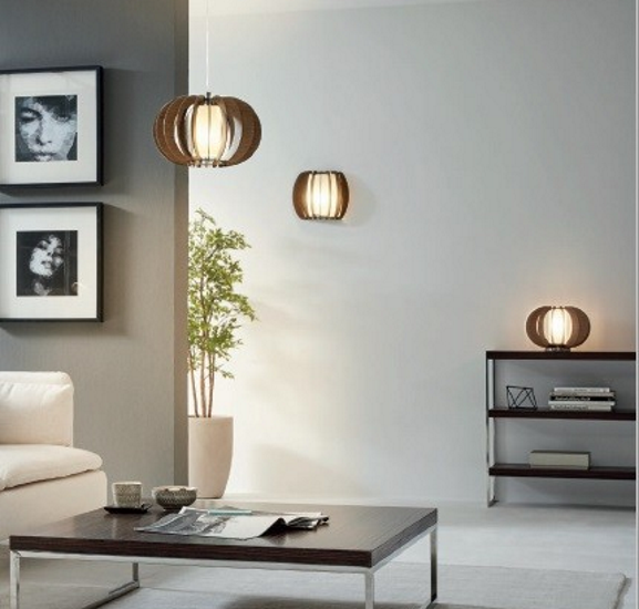 Material corp de iluminat: otel, lemn, sticla