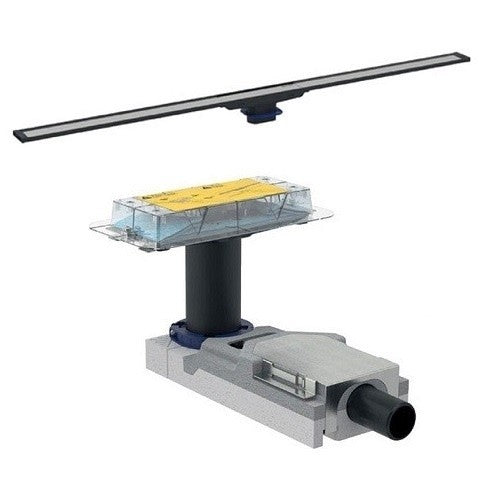 - Setul de instalare cu folie de hidroizolație integrată, aplicată încă din fabrică și sifonul integrat sunt conectate la sistemul de canalizare al clădirii de către instalator în perfectă siguranță