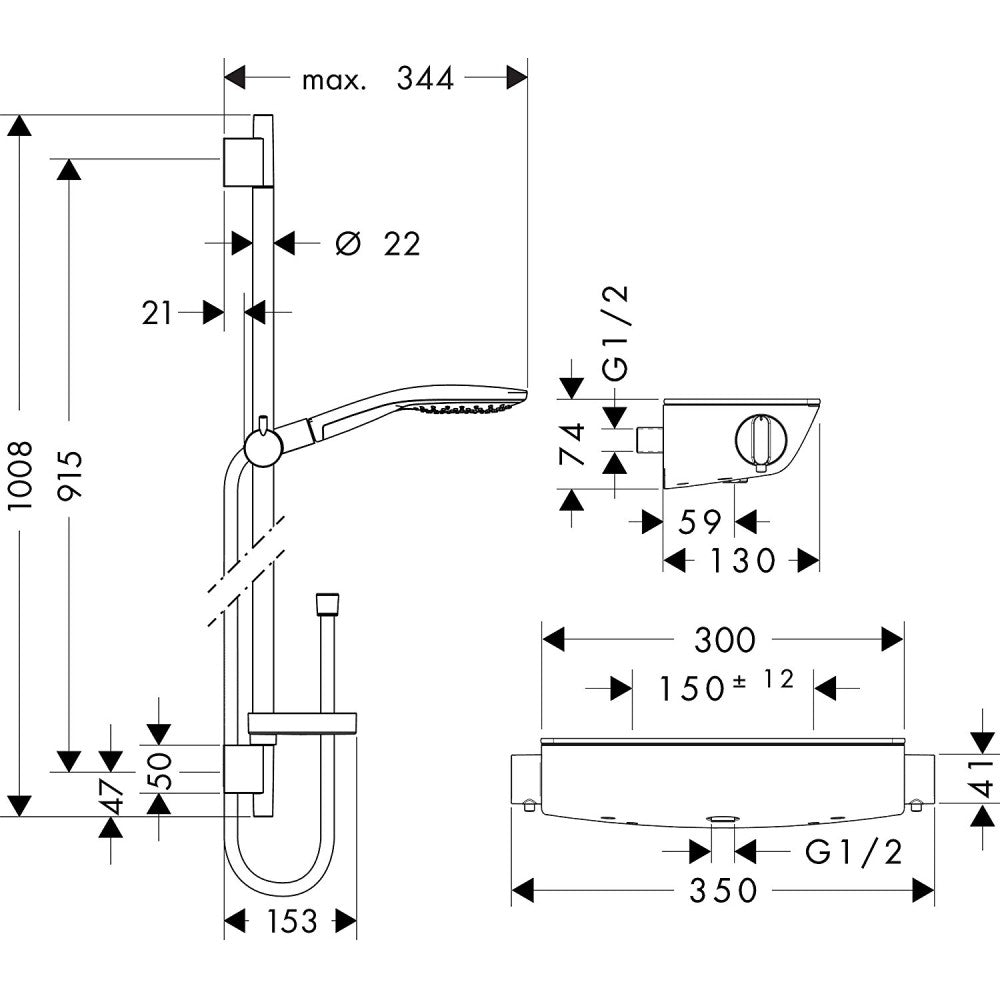 Hansgrohe Ecostat Select/Raindance Select S 150 3jet Baterie dus cu bara 90 cm cu termostat, crom